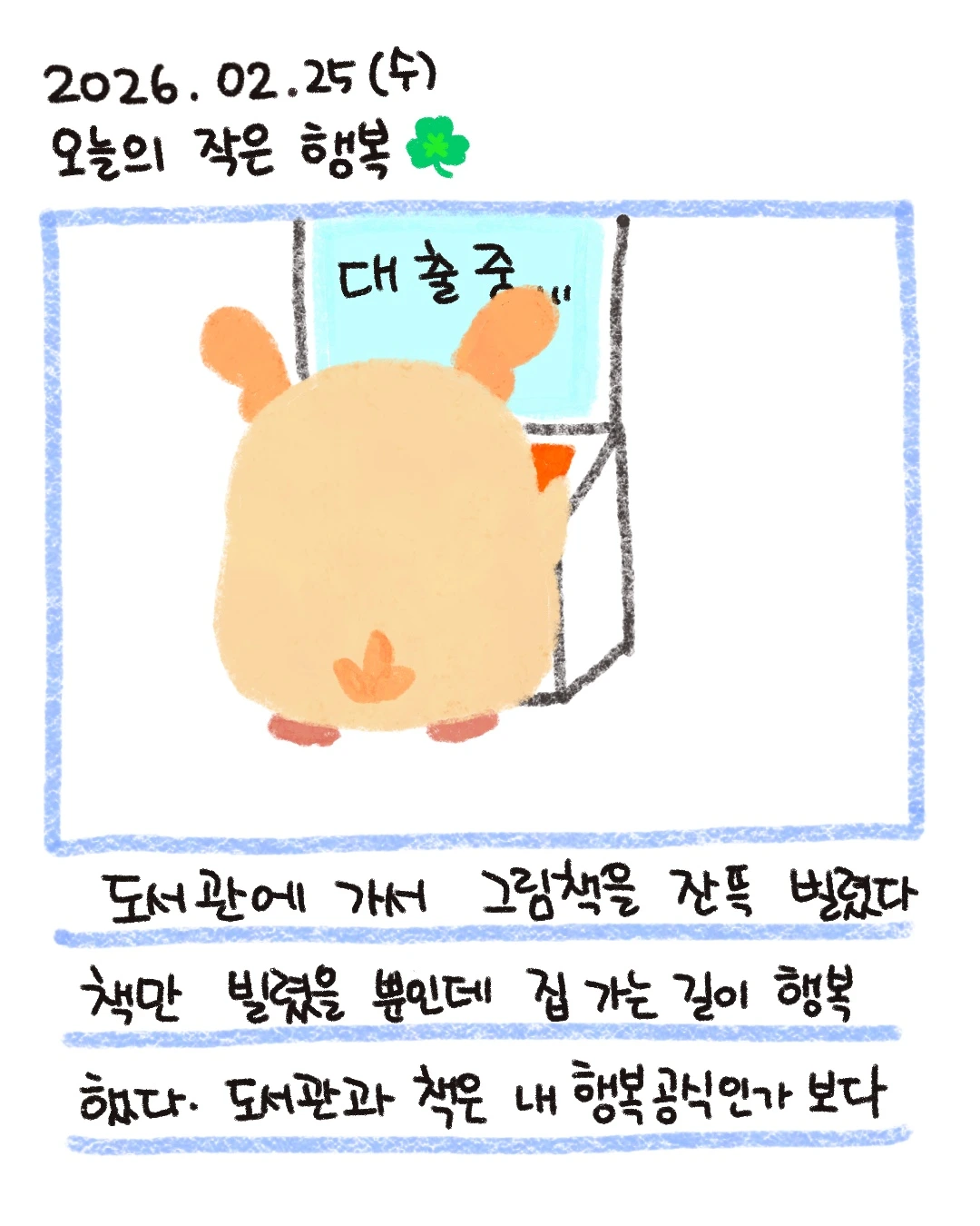그중 하나가 <도서관 가서 책 빌리는 것>이었는데요,