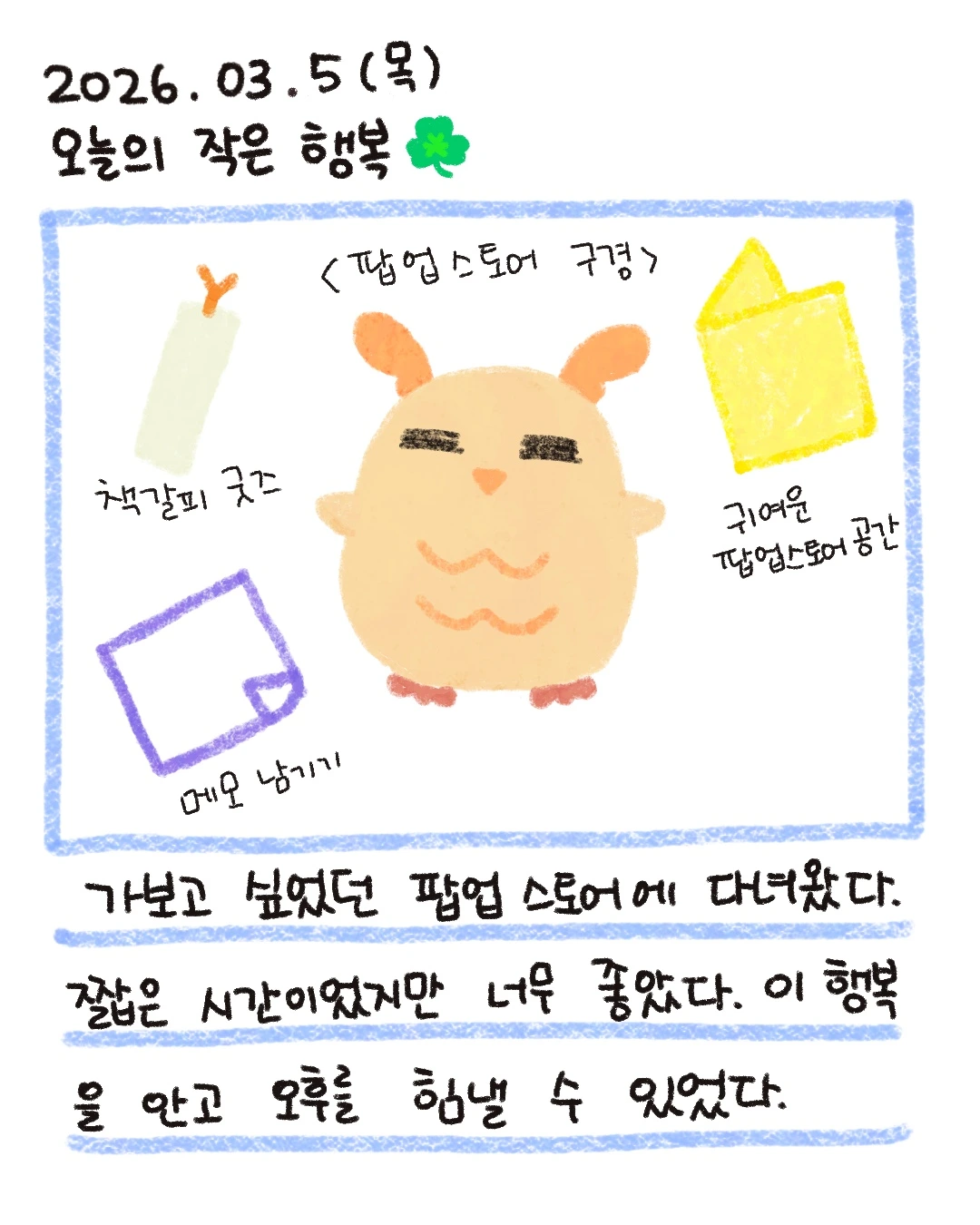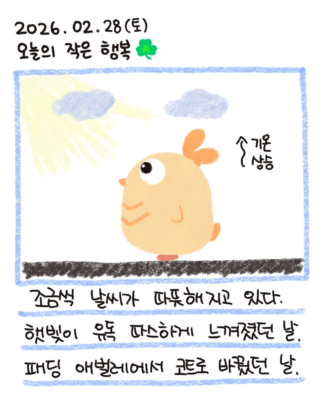 우리의 하루에 우울만 있는 건 아닌 거 같아요. 아주 작은 행복도 있다는 거..우울이 너무 크게 다가와서 잊고 있을지도 모르지만요!