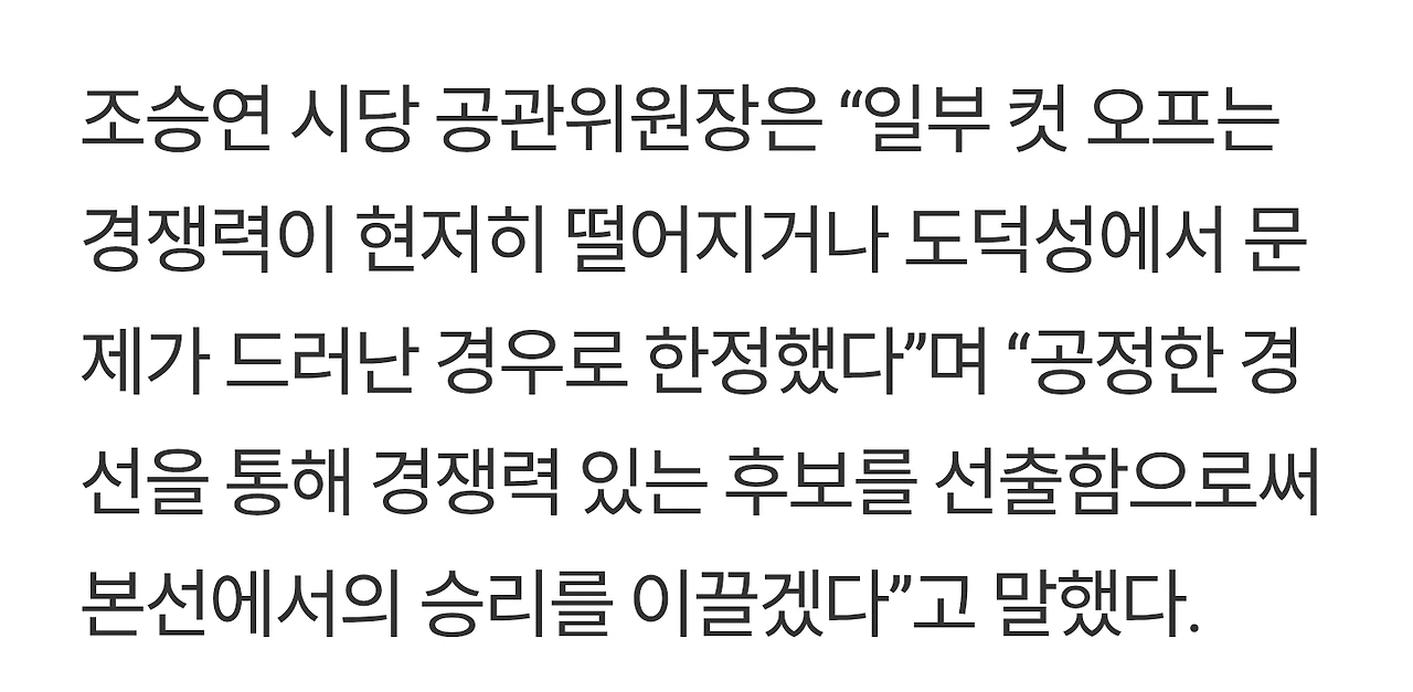 허숙정 후보가 왜 컷오프 대상이었는지 구체적 근거를 공개하십시오.