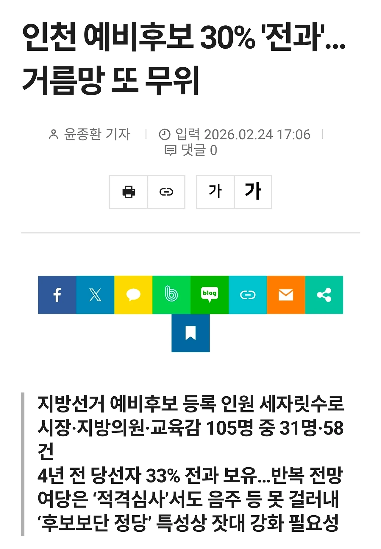 이번 지방선거에 나온 인천 예비후보자의 1/3이 전과자 입니다. 도덕성을 검증했다고요?