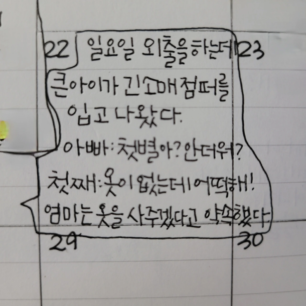 큰아이가 긴소매 점퍼를 입고 나온 거예요.