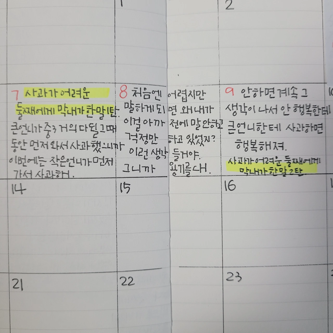 안 하면 계속 그 생각이 나서 안 행복한데 큰언니한테 사과하면 행복해져.”