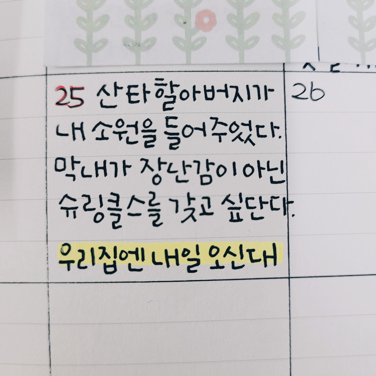 우리 집엔 내일 오신대.