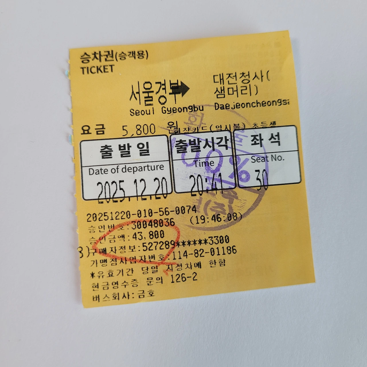 신랑과 첫째는 대전청사로 가는 8시 41분 버스표를 끊었다.