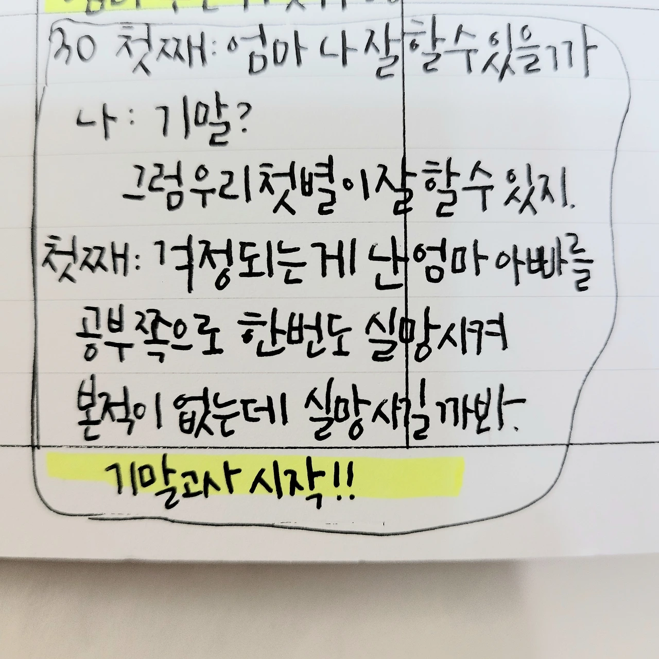 #중학생딸 #기말고사 #딸셋엄마 #손글씨일기 #엄마의시선