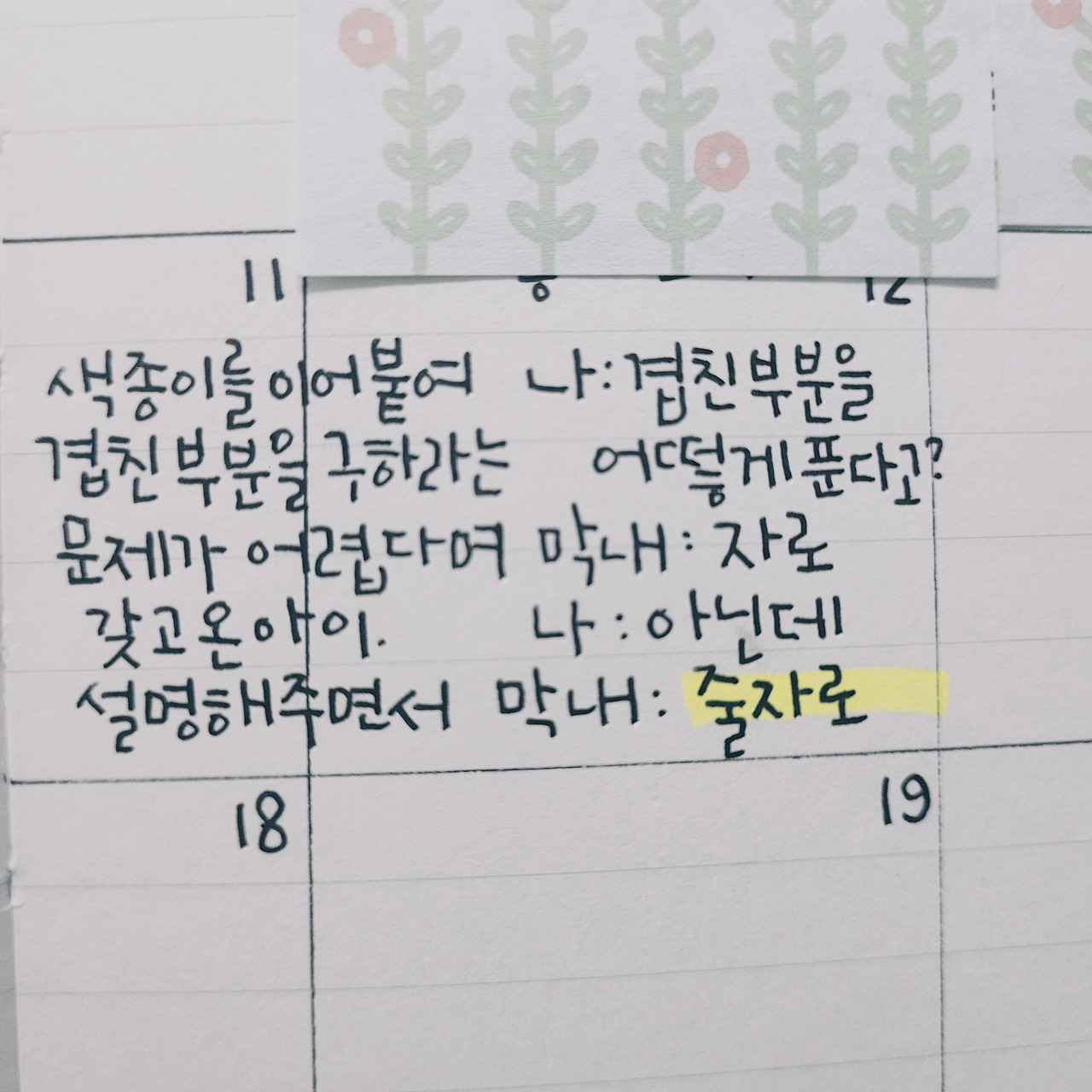 지저분한 글자들은 깨끗하게 지우고 썼으면 좋았겠다는 아쉬움이 스쳤지만 입 밖으로 내지는 않았다. 대견함에 아이를 칭찬하려던 찰나, 풀이 과정 아래 적힌 글자가 내 심장을 툭 건드렸다.