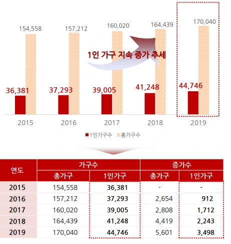 지식산업센터 및 법조단지 오피스인구 유입시 1인 가구 주택수 부족이 예상됩니다.