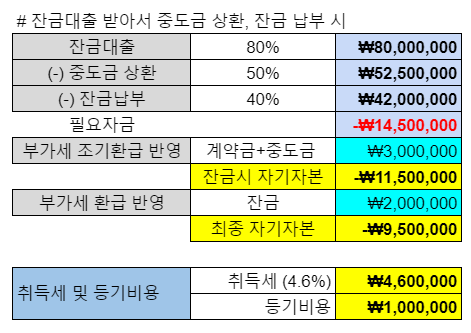 잔금 시에는 잔금대출 80%로 ① 중도금 대출을 상환하고,
