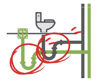 즉, 봉수가 말라버리면 주배관(모든 배관이 합류하는 큰 배관)에서 발생한 악취가 배수구, 대변기 및 소변기의 구멍을 타고 화장실로 역류하게 됩니다.