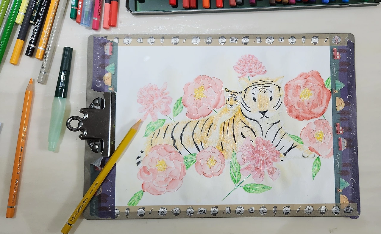 작년에 소중한 가정을 꾸린 분이 드디어 100일을 맞았다고 해서 호랑이 가족이 생각이 나 그려보았다.
