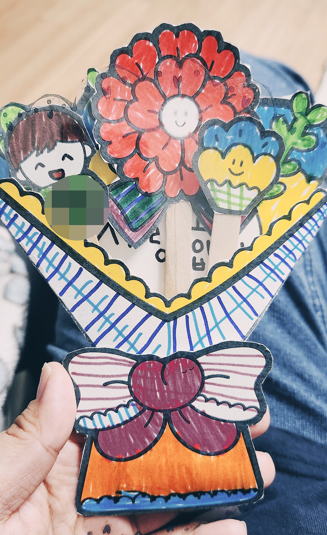 오동통한 아가였던 아이들은 어느새 훌쩍 커서 정성껏 만들고 쓴 카네이션과 카드를 가지고 왔다.