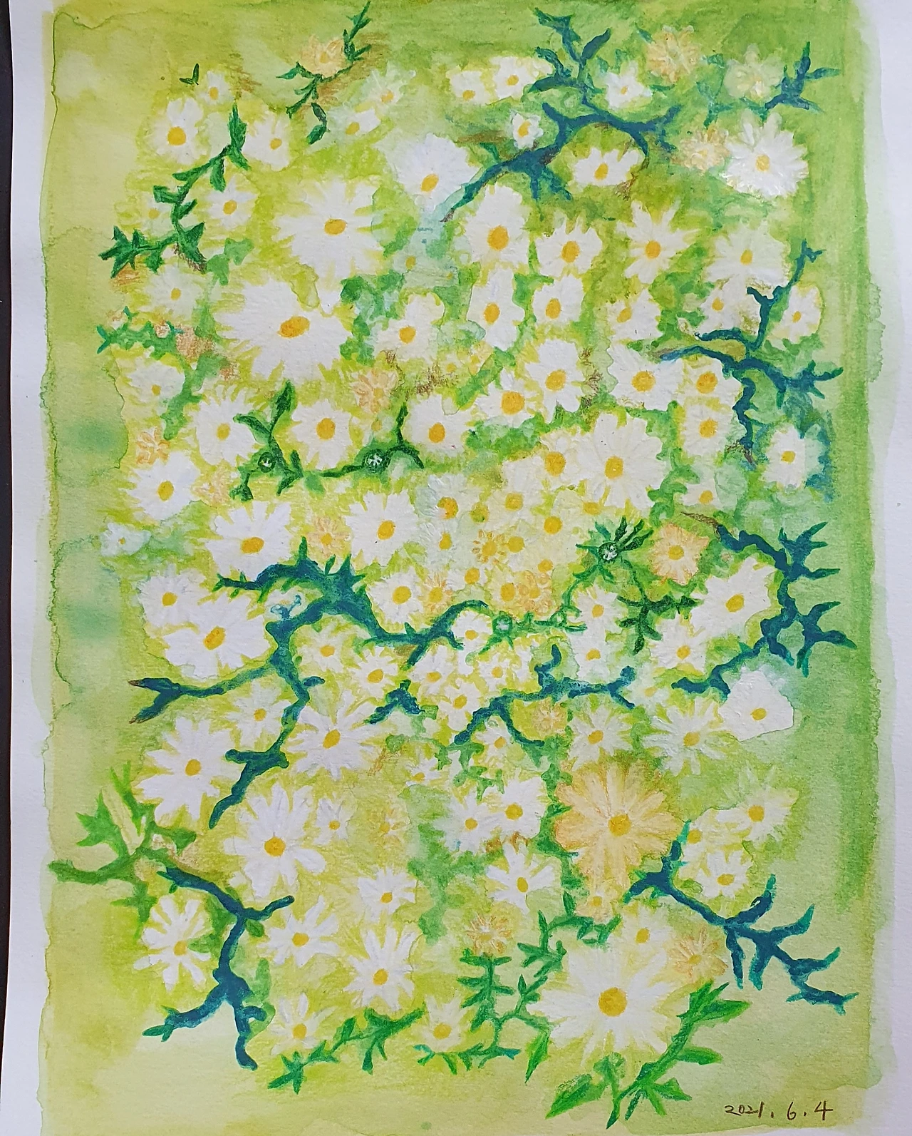 땡볕 아래 흰꽃들이 레몬보다도 상큼해 보여서 그 모습을 기억하고 싶어서 무작정 왼손으로 옮겼다.