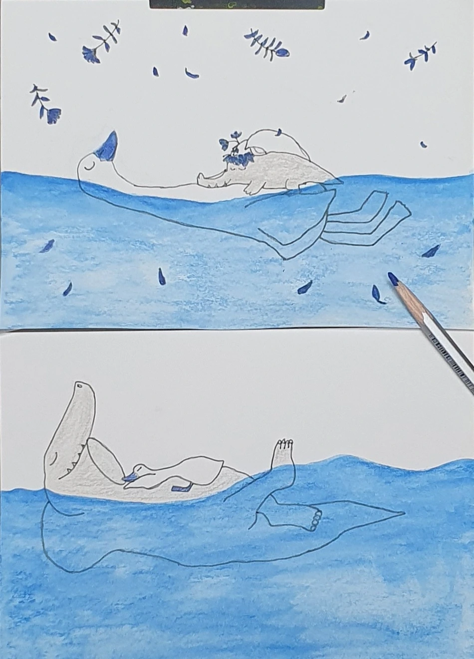서서히 자신이 키우는 악어에 대한 기억을 잃어가는 파랑 오리를 보며 악어는 곁에서 파랑 오리를 보살핀다.