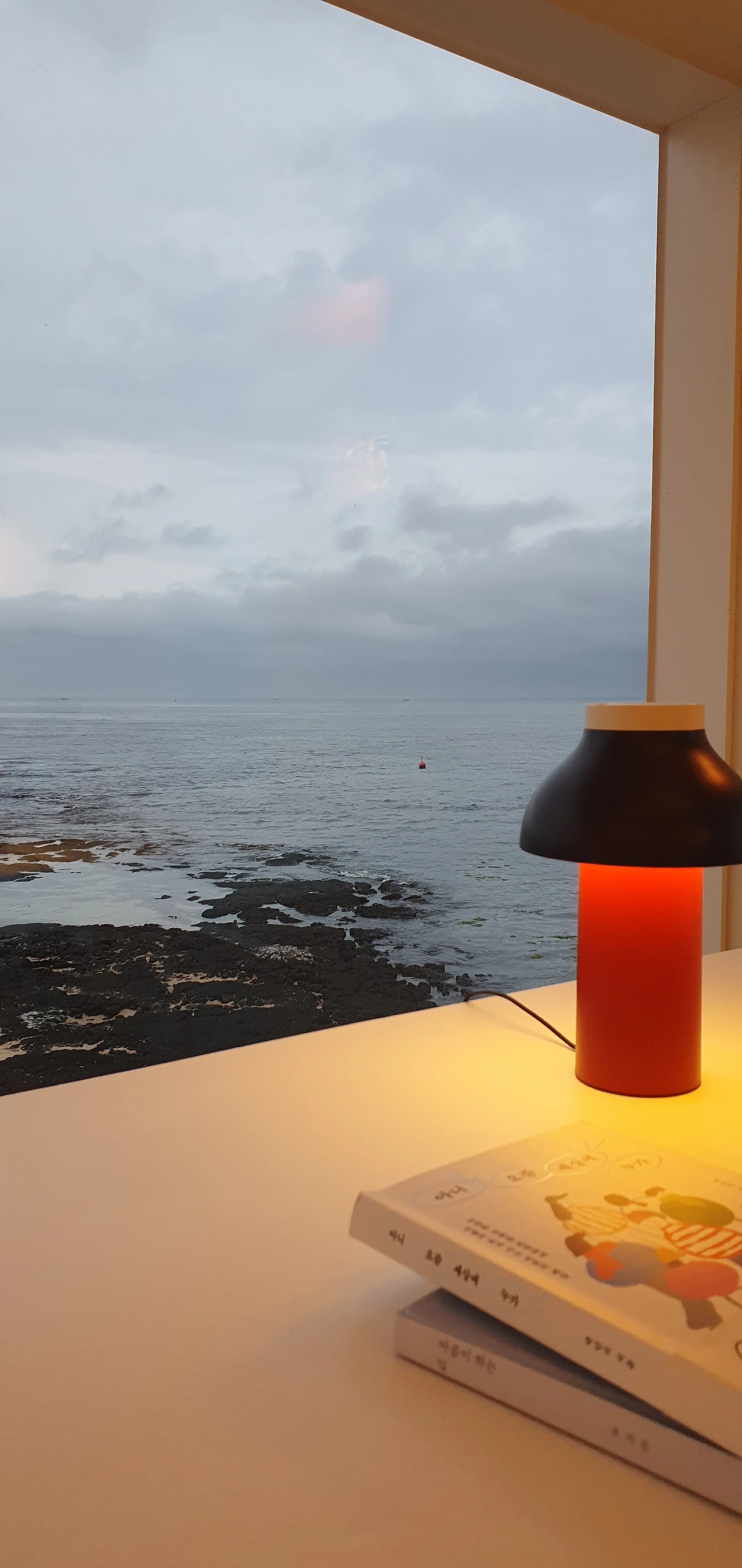 제주 한동리에는 책이 가득한 북스테이숙소가 있다. 책 닦는 남자! 거실이 서점 같은 그 숙소에는 숨어있기 좋은 방이 있고 서로를 간섭하지 않는 이들이 있다. 책과 자유를 찾는 이에게 좋은 곳이다. 이 동네에는 비수기애호가라는 카페가 있다. 삼면이 커다란 창으로 되어 있어 어디 앉으나 바다를 볼 수 있었다. 이곳에 앉아 밖을 보니 오래된 작은 방파제가 있었다. 그곳에서 어린아이와 아버지가 낚시를 하고 있었다. 난 그 모습에 눈을 떼지 못했다.