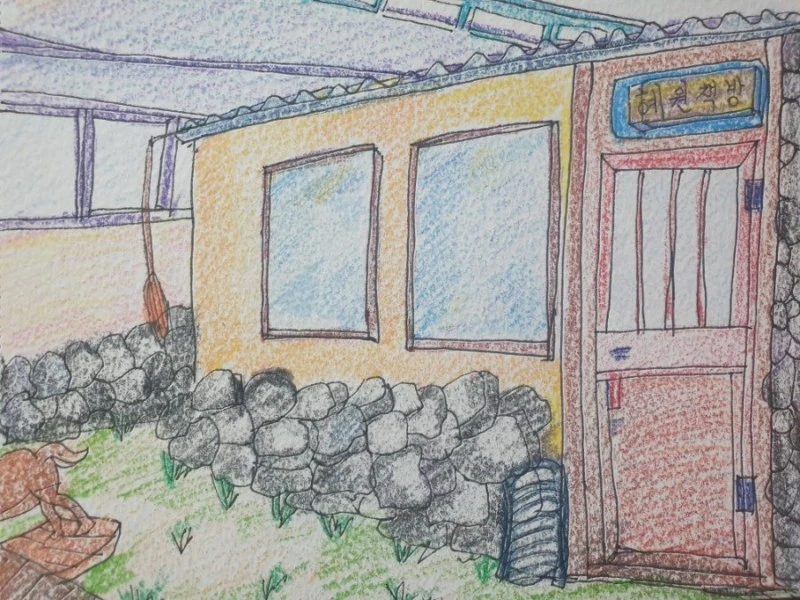 온라인 드로잉 1기 톡방에 책방그림을 올리면 기다렸다는 듯이 톡들이 울려댔다. 느낌표로 리액션이 전해지고 나는 감사하다며 쑥스럽게 미소 짓는 이모티콘을 날렸다.