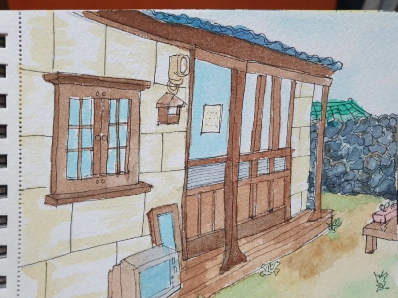 그림에 관심을 가지게 된 것은 작은 서점 재론북스의 어반스케치 강좌를 통해서이다. 4회의 짧은 수업이었다. 왕초보도 가능하다 해서 신청했는데 강사님은 강의를 한지 오래되지 않은 병아리작가님이었다. 그래서인지 엄격하기보다는 조금만 그려도 잘했다고 해주셨다. 꽃을 따라 그렸는데 다른 사람보다 못 그린 그림인데도 독특하다고 웃어주셨다. 전문가의 날카로운 가르침에 발전하는 사람도 있지만 나처럼 남의 평가에 휘둘리는 사람은 초보강사님의 따스한 응원에 더 강해질 수 있었다.