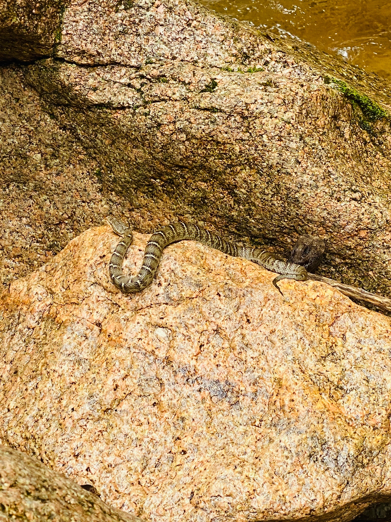 봄철이나 가을에 특히 조심해야 하는 녀석들인데 바로 뱀! 우리나라 뱀 중에 독사는 대부분 살모사인데 생각보다 눈에 잘 보이지 않아서 자칫했다가 밟기 쉽다. 그리고 계곡 옆 바위에서 몸을 말리는 경우도 많으니 조심해야 한다.