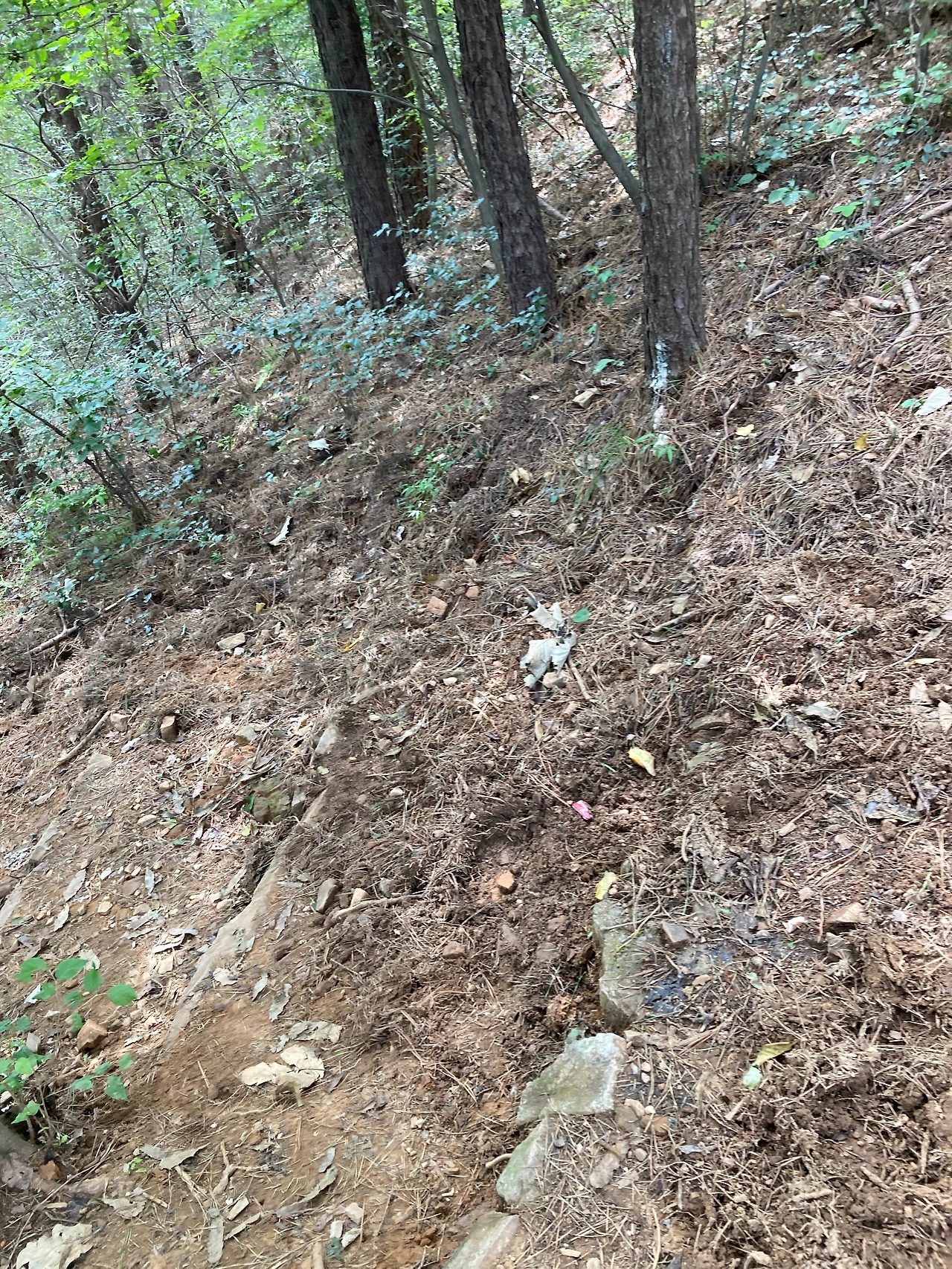 길을 걷다가 요런 구멍은 뱀이 사는 곳이 빠르게 스쳐 지나가자. 그리고 뱀만큼이나 무서운 존재가 산돼지이다. 여기저기 멧돼지가 먹이를 찾기 위해 파헤쳐놓은 흔적이 있다면 발걸음을 재촉해야 한다. 혹시 마주치더라도 절대 큰소리를 내지 않아야 한다.