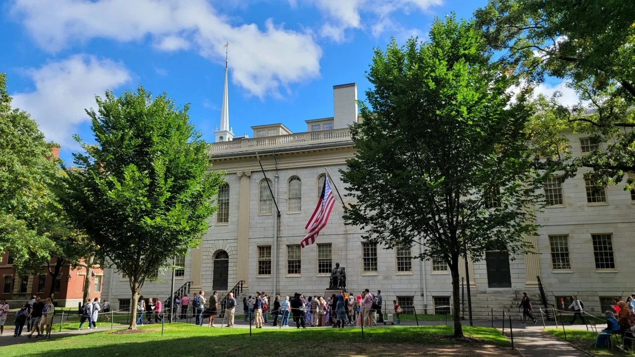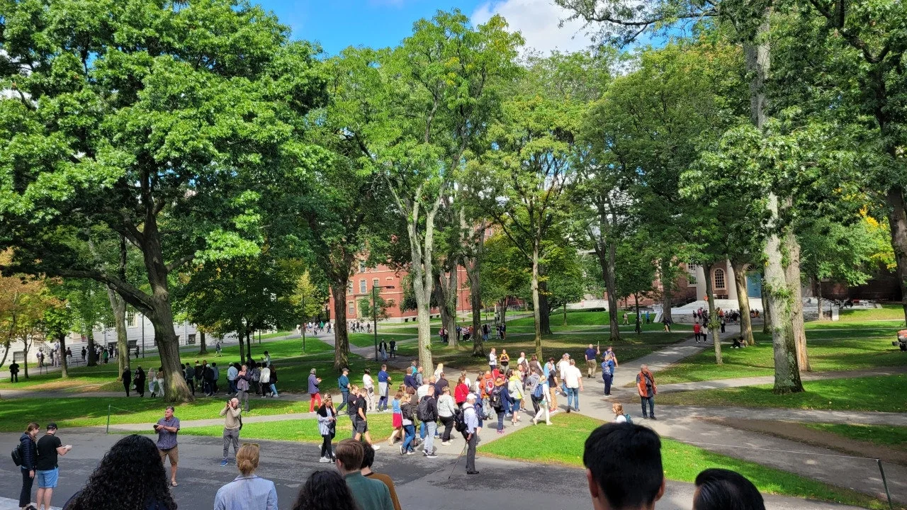 하버드 대학 캠퍼스 투어 중인 사람들로 붐비고 있다.