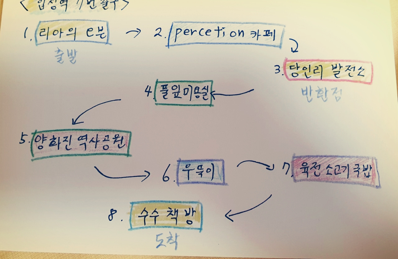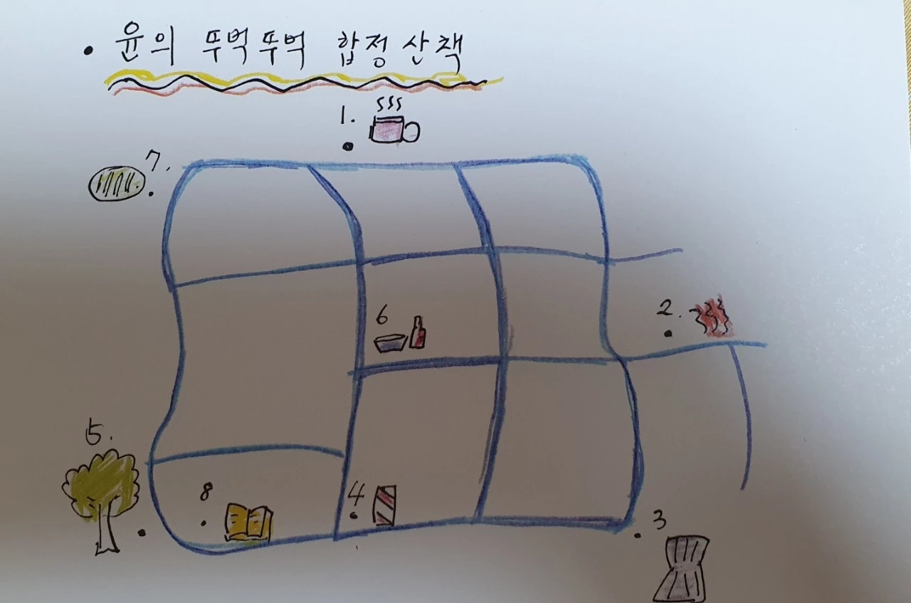 책방 연희에서 좋아하는 공간을 엽서로 만드는 수업에 참여했다. 마포구 지도에 자신이 자주 가는 장소를 표시하고 선으로 연결하는 강좌였는데 4회 동안 서로의 산책로를 소개하고 엽서를 만드는 과정이었다. 나는 이런저런 곳을 생각하다 자주 걷는 합정역 주변이 떠올랐다.