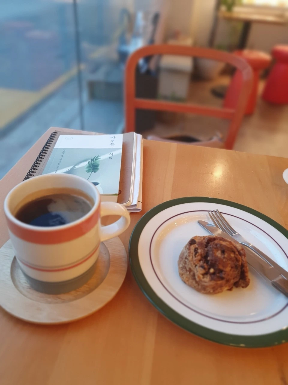 통창이 있는 카페에 앉아