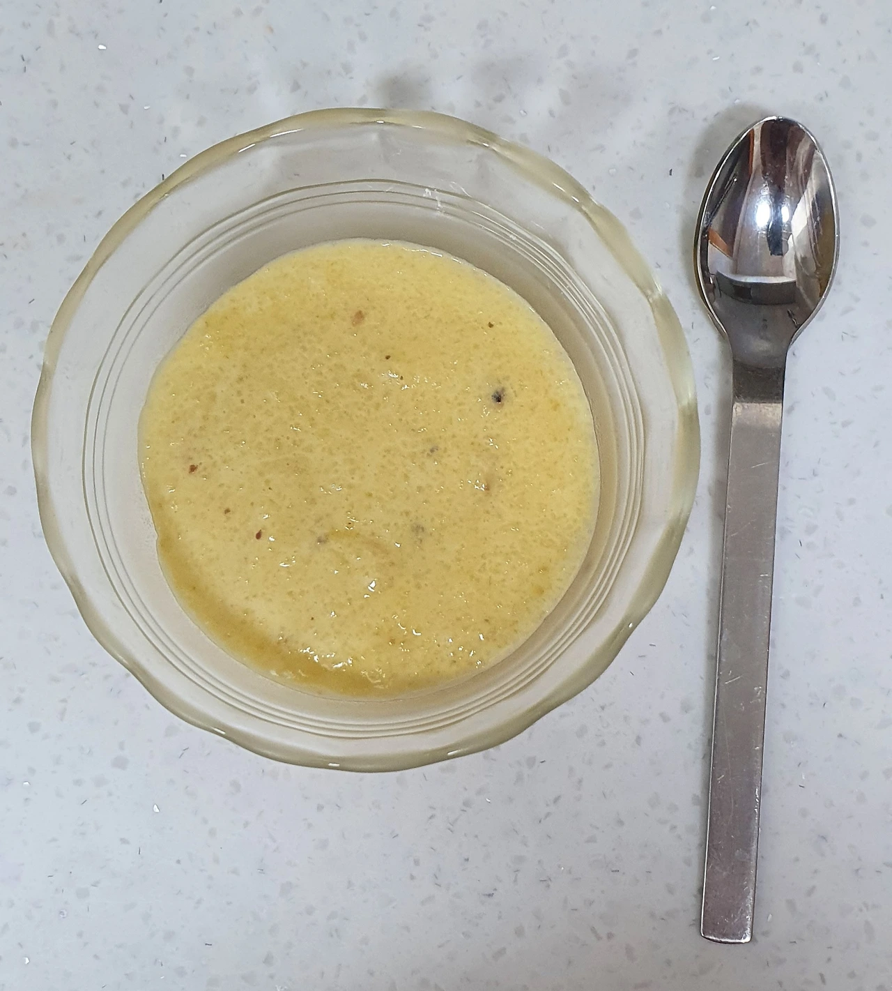 달걀이 잘못 깨져서 거의 2개 가까이 들어갔고, 지나치게 단 건 싫어서 설탕은 40g만 넣었는데 당도가 적당했던 것 같다. 베이킹을 할 때처럼 정량이 있는 게 아니라 가열 중에 맛을 보면서 부족한 맛을 채워도 좋겠다는 생각이