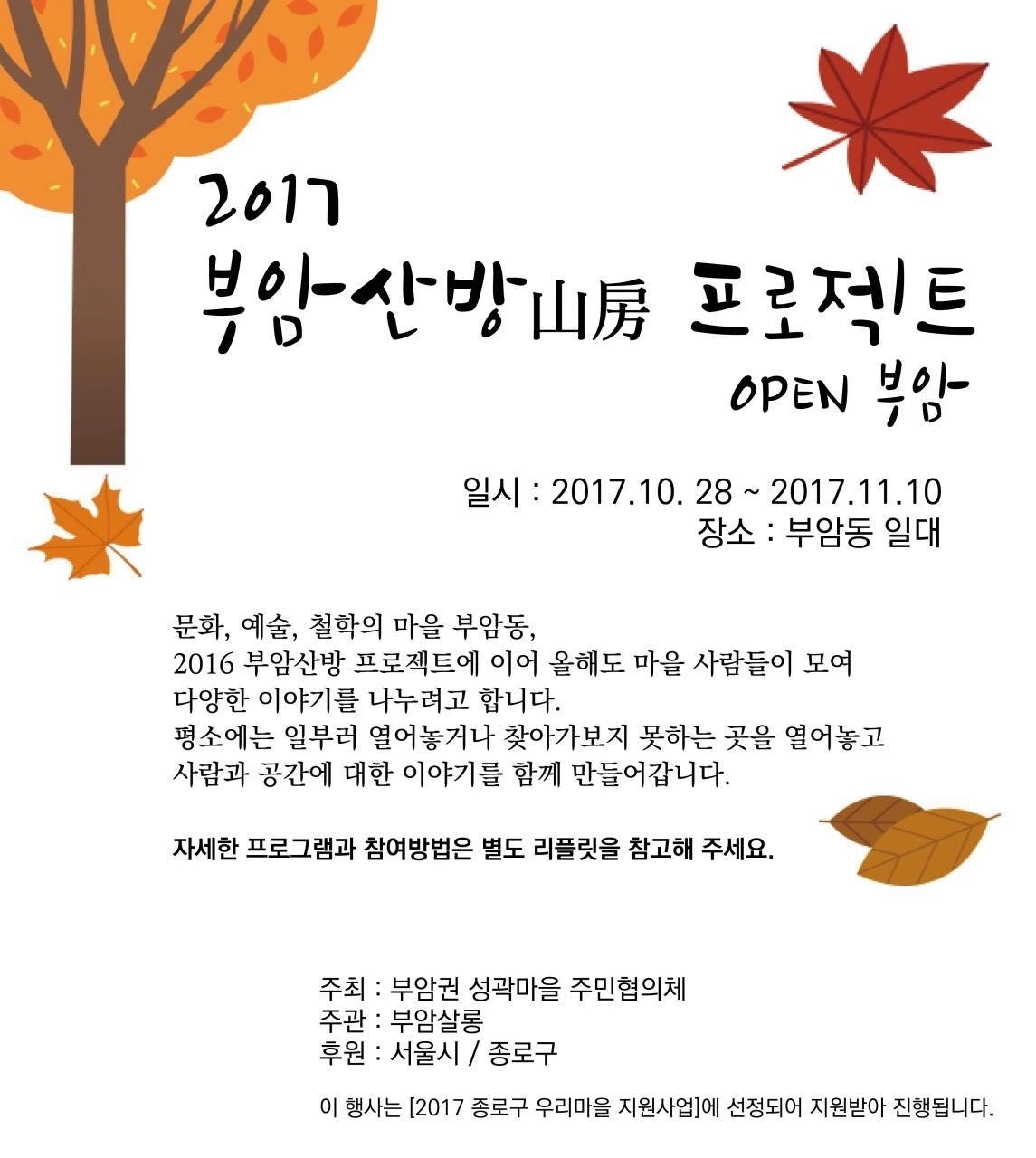 "제가 지역사업을 하나 신청한 것이 채택되어 기획한 부암동 프로젝트예요. 밴드에도 올리겠지만 오늘 오신 분들은 꼭 오세요."