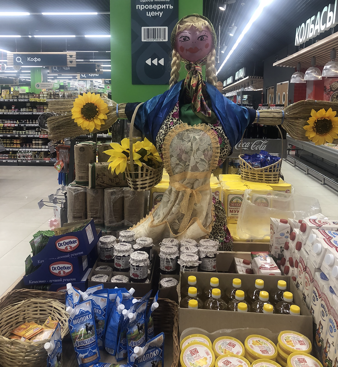 마슬레니짜를 앞둔 슈퍼마켓엔 임시 매대가 열렸다. 메밀가루, 밀가루, 베이킹 소다, 해바라기씨 오일, 꿀, 우유, 버터가 한가득이다. 러시아식 팬케이크 블린을 위한 재료들이었다.