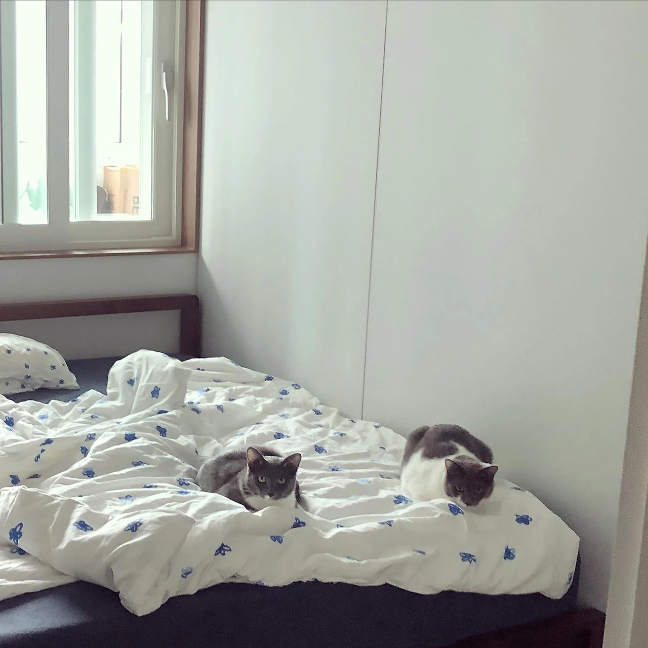 아침에 눈을 뜨면 모래 속 고양이의 똥을 치운다. (언제 이렇게 많이....? ) 아침과 저녁 사료를 주고, 마실 물을 수시로 갈아준다. (언제 이렇게 다.... 먹었니?) 장난감을 꺼내서 놀아준다. 그리고 청소기를 돌린다. 처음엔 침대와 소파 아래 숨어있던 녀석들은 내 곁에 다가와 냐-옹 하며 다리에 몸을 비비고, 자신의 발을 내 손 등 위로 턱 - 하고 올렸다. 침대로 가면 쪼르르 따라 들어와 내 발 밑에 누웠다. 목과 배를 긁어주면 그르렁그르렁 소리로 기분 좋음을 표현했다. 따뜻하고 작은 생명체의 존재가 주는 평안함, 말로 표현하기 힘든 작은 행복감이 마음 깊은 곳에서 잔잔하게 차올랐다.