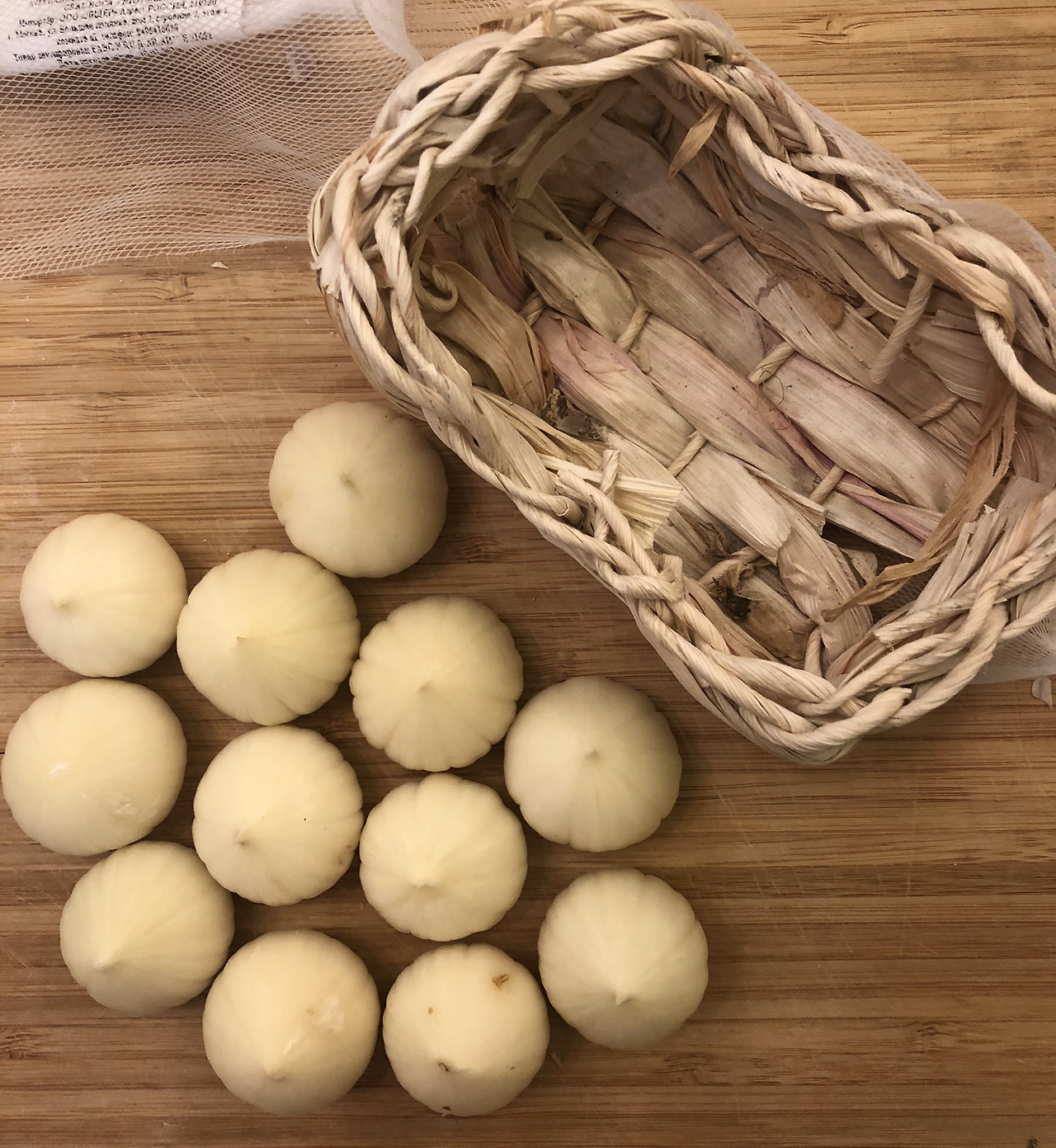 “이 마늘 좀 같이 까자. 까서 여기에 두면 돼.”