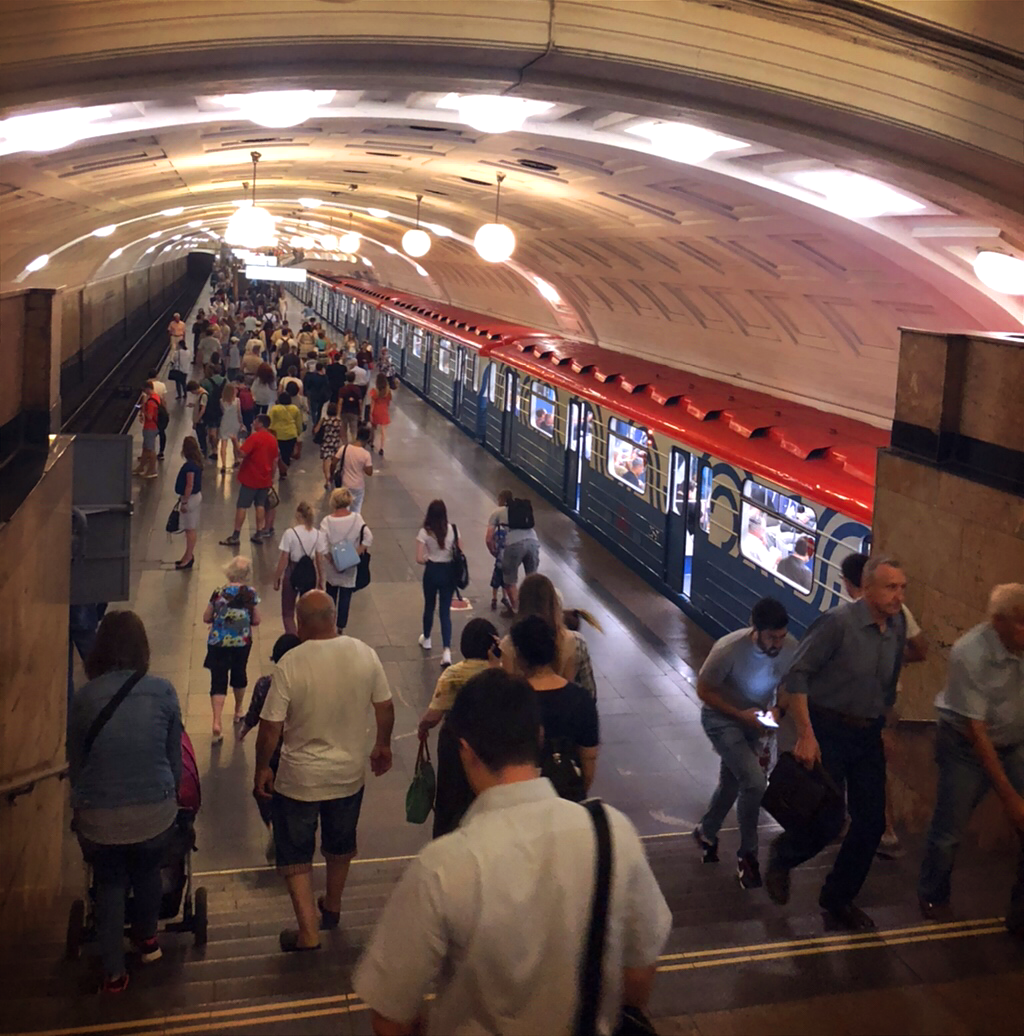 모스크바의 지하철은 1935년 5월 15일, 처음 운행을 시작했다. 색으로 각 노선을 구분하는데 최초의 노선은 숫자 1이 쓰인 빨간색 선의 일부분(쇼콜니끼 - 파르크 쿨투릐)이다. 그때에는 4분에 한 대씩 다녔다고 한다. 역도 다르지만, 도착하는 열차도 다양하다. 그중 ‘크라스나야 스트렐라(빨간 화살표)’는 상트와 모스크바를 오가는 최초의 브랜드 열차(1931년)인데, 75주년을 기념하여 만든 열차도 지하철로 탈 수 있다. 새해(1월 1일), 전승기념일(5월 9일)을 앞두고는 특별한 래핑을 한 열차가 운행한다. 나는 플랫폼에서 ‘오늘은 어떤 열차가 내게 올까?’ 늘 설레는 마음으로 다음 열차를 기다렸다.