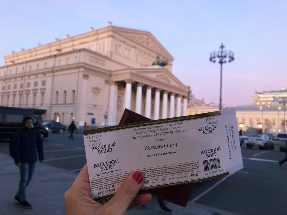 평일 오후, 같은 반의 유학생 완과 함께 볼쇼이 극장으로 향했다. 발레 공연은 매번 다른데, 그 날은 마침 아직 보지 못했던 “지젤” 이 저녁에 공연 예정이었다. 오후 4시부터 선착순 84석 (연극의 경우 30석)까지 발급되는 표를 받기 위해 이미 많은 학생들이 줄을 섰다. 학생증과 100 루블을 내고 발레 ’ 지젤’ 공연표를 얻었다.