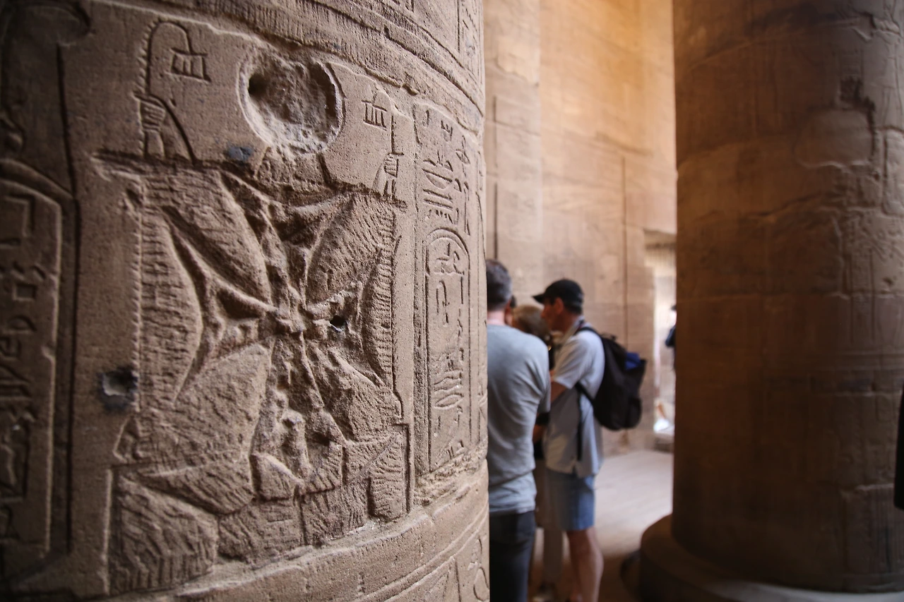 신전 안으로 들어가면 기독교 흔적을 볼 수 있다. 로마 점령 이후에 벽을 파서 성당을 지은 것이다. 사실 지었다는 표현은 너무 순화해서 쓴 것 같고 어찌 보면 파괴한 거라 볼 수 있다. 사실 이집트 신전에서 상형문자 다음으로 볼 수 있는 건 누군가 얼굴들을 파서 없앤 흔적들이다. 우상 숭배를 금 했던 교리를 충실(?)하게 지키기 위해 얼굴들을 마구 헤집어 놓은 것이다. 그리고 곳곳에서 십자가가 새겨져 있는 것을 찾아볼 수 있다. 자신들과 다르다고 마구 헤집고 파괴하는 게 정말로 종교인 건가 다시금 생각하게 됐다.