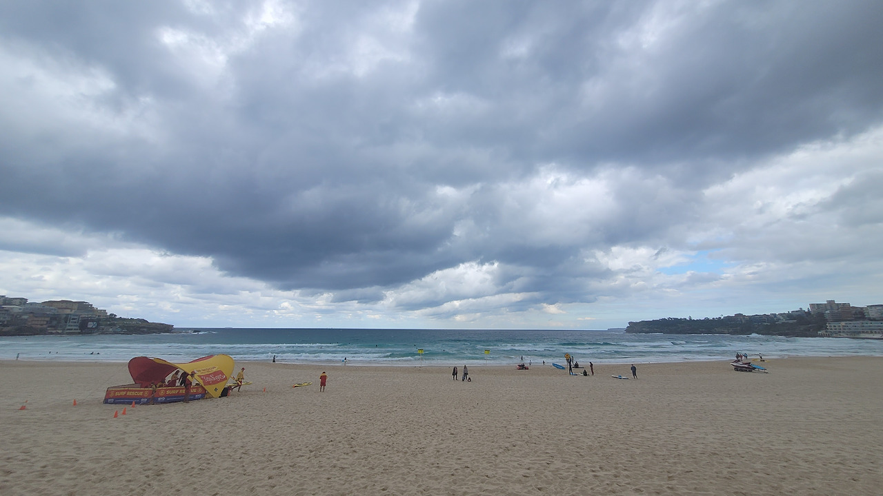 아쉬운 마음을 가지고 동쪽 해안 절벽 갭팍(Gap Park)에 도착했다. 그대로 해석하자면 틈새 공원(?)이라고 불리는 곳으로 남태평양해에서 시드니만으로 들어가는 곳으로 어떻게 보면 오스트레일리아 대륙의 틈이다. 절벽 높이를 보니 시드니항까지 연결된 물길이 얼마나 깊은지 가늠이 되었다. 큰 배가 정박하기에 충분히 깊었기에 크루즈를 비롯한 군함까지 정박이 가능해지며 항구 도시로 발전할 수 있었던 것이다. 절벽을 따라 공원이 조성되어 있다 보니 산책을 하거나 조깅을 하는 사람들이 많이 보였다. 그들을 보니 부족한 여유가 더 크게 느껴졌다. 그런 마음 때문인지 다음 장소인 본다이비치를 가서도 마음이 들뜨지는 않았다. 도심 가까이 있어 접근성이 좋은 해변으로 파도가 강해 서핑 장소로도 유명한 곳이다. 이번에는 약간의 여유를 즐길 시간을 받았기에 기분 전환하기에는 딱 좋은 곳이었다. 하지만 도착한 해변은 너무나 한적했다. 아니 한적하다 못해 흐린 날씨처럼 무채색 느낌까지 들었다. 게다가산책을 하려고 하는 순간 비가 내려 바로 차로 복귀 했다. 이래저래 오늘 여행 기분은 매우 흐림이다.