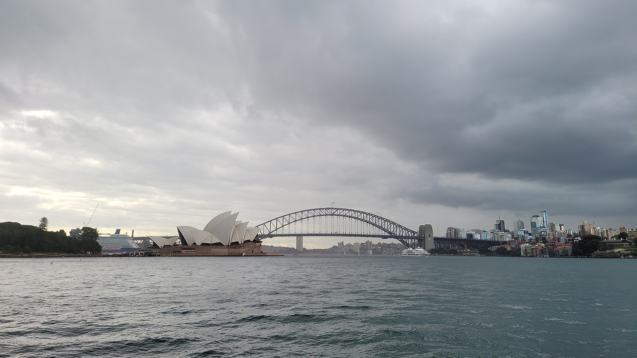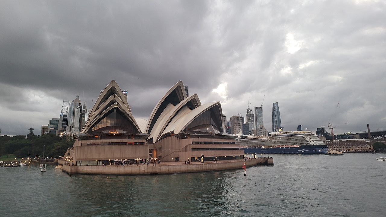 시드니 오페라 하우스는 자신이 왜 오늘의 메인 디쉬인지를 훌륭하게 증명했다. 이제 오늘 코스의 마지막 후식이 남았다. 오늘의 마지막은 크루즈를 타고 ㅈ녁을 먹으며 시드니의 야경을 보는 일정이다. 배를 타고 저녁을 먹으며 도심의 야경을 보는 건 이번이 두 번째다. 예전에 상해 출장 갔을 때 경험을 했는데, 그때 좋았던 기억이 있어서 그런지 이번에도 기대가 컸다. 하지만 한 가지 걱정은 날씨였다. 크루즈를 타기 직전까지 비가 왔기 때문이다. 배는 생각보다 꽤 컸다. 크루즈는 총 세 개의 층으로 되어있었는데 두 개의 층이 테이블로 가득 채워져 있었고 양쪽 벽은 통유리로 되어 있어 식사를 하면서 밖을 볼 수 있게 되어 있었다. 물론 맨 위층에 전말을 볼 수 있는 곳이 따로 있다. 배가 커서 안정감이 있었지만 반면에 사람이 많아서 시끌벅적 어수선했다. 식사를 하며 여유롭게 밖의 풍경을 볼 수 있는 분위기가 아니라서 밥을 빨리 먹고 밖으로 나왔다. 디너 크루즈의 장점은 바다에서 시드니 오페라 하우스를 보는 재미와 시드니의 야경을 보는 것도 있지만 아마 백미는 일몰일 것이다. 하지만 날씨의 저주 때문에 일몰을 볼 수 있는 행운은 나에게 오지 않았다. 나의 아쉬움을 아는지 구름 사이로 살짝 일몰의 색을 보여주었다. 쌀짝 보이는 하늘색을 보니 내 아쉬움은 더 짙어졌다. 그래서인지 시드니의 야경은 기대보다는 화려하지 않아서인지 크게 인상 깊지 않았다. 그렇게 살짝 아쉬운 후식을 끝으로 오늘의 코스 요리 같았던 시드니 여행이 끝이 났다.