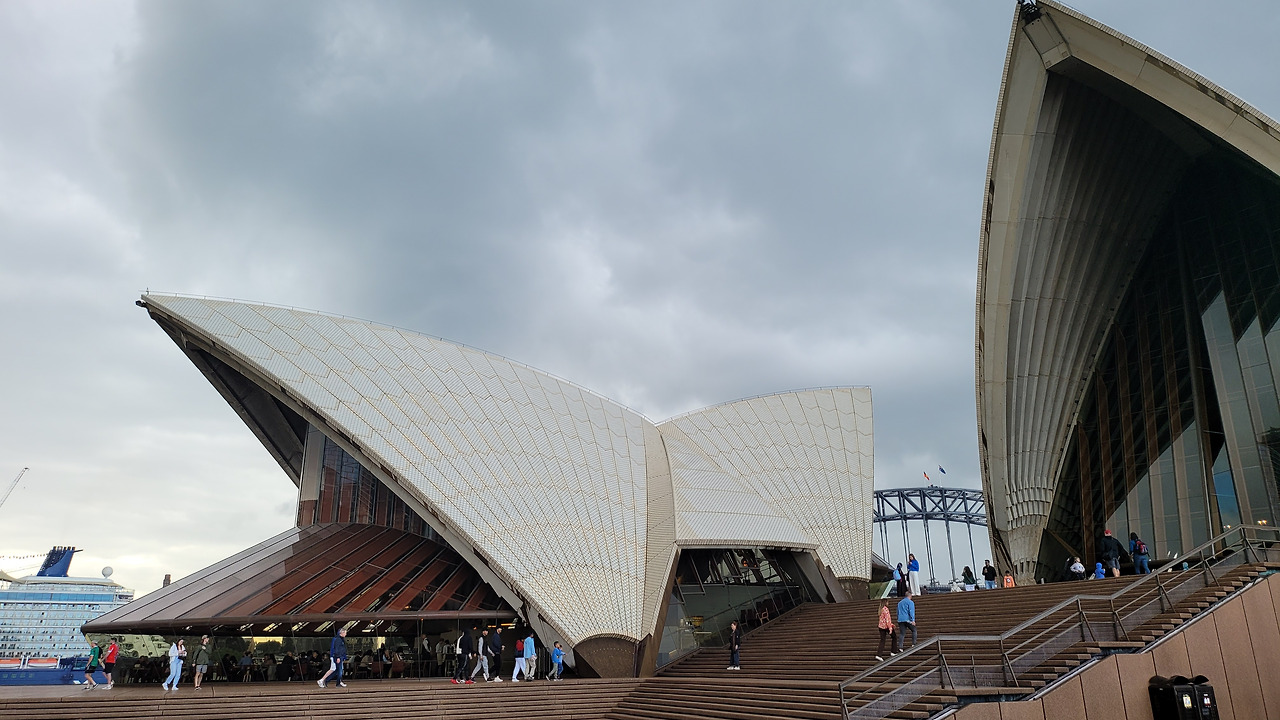 애피타이저에 와인까지 경험했으니 오늘의 메인 디쉬 오페라 하우스와 하버브리지를 보러 갔다. 먼저 오페라 하우스와 하버브리지가 한눈에 보이는 건너편 공원으로 갔다. 바다 옆 새하얀 오페라 하우스를 보니 진짜 시드니에 온 느낌이 들었다. 하지만 하늘은 나에게 즐길 사치를 허락하지 않았다. 바로 비가 내렸기 때문이다. 어쩌겠는가. 날씨는 그 누구도 조절할 수 없지 않겠는가. 심술 가득 한 내 모습이 마음에 안 들었는지 하늘에서 벌을 주는 건가 싶었다. 원래 대로라면 공원에서 오페라 하우스까지 걸어가는 코스가 있어 바닷가를 산책하며 걸어갈 수 있지만 굵어진 비 때문에 결국 차로 이동하기로 했다. 가까이서 본 오페라 하우스는 생각보다 화려하지 않았다. 하지만 단조로운 색과 반복되는 지붕의 패턴이 바닷가에 위치한 오페라 하우스를 더 돋보이게 한다. 게다가 시선의 방향에 따라 그 모습이 바뀌는 것도 매력적이었다. 오페라 하우스 안으로 들어갈 수 있다는 이야기를 듣고 입구를 찾아다녔는데 안에 분명히 사람들이 많았는데 문은 잠겨져 있었다. 곳곳에 포스터가 붙여져 있는 것을 보니 오늘 공연이 있는 것 같았다. 어렵사리 다른 입구를 찾아 들어갔더니 사람들은 공연장 안으로 들어간 듯 조용했다. 잠시 후 음악 소리가 들리기 시작했다. 교향악단의 연주가 밖으로 흘러나온 것이다. 로비에 앉아서 음악을 듣고 있자니 이런 게 여행이지라는 생각에 투덜이 모드가 꺼졌다. 음악을 들은 그 찰나의 시간에 '여유'라는 단어가 내게 새겨졌다. 오페라 하우스의 매력 때문인지 아니면 교향악 때문인지는 모르겠지만 찰나의 시간 속에서도 여유를 찾을 수 있다는 걸 떠날 때 되니까 깨닫게 되었다.