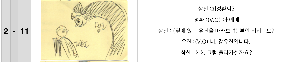 한창 콘티 그릴 때, 삼신 등장 씬에 참고한다고 유튜브에 "빌런 등장"으로 검색해서 영화 <101 달마시안> 영상 클립을 봤었는데도 나는 왜 이런 생각 못했을까? 역시 초짜 감독은 갈길이 멀다. 아무튼 이용녀 배우님은 멋들어진 연기를 펼치시고 떠나셨다. 웬만하면 성우를 선호하는 디렉터님 마저도 헛웃음이 나오게 만드시곤. 별 거 아닌듯이. 쿨하게.