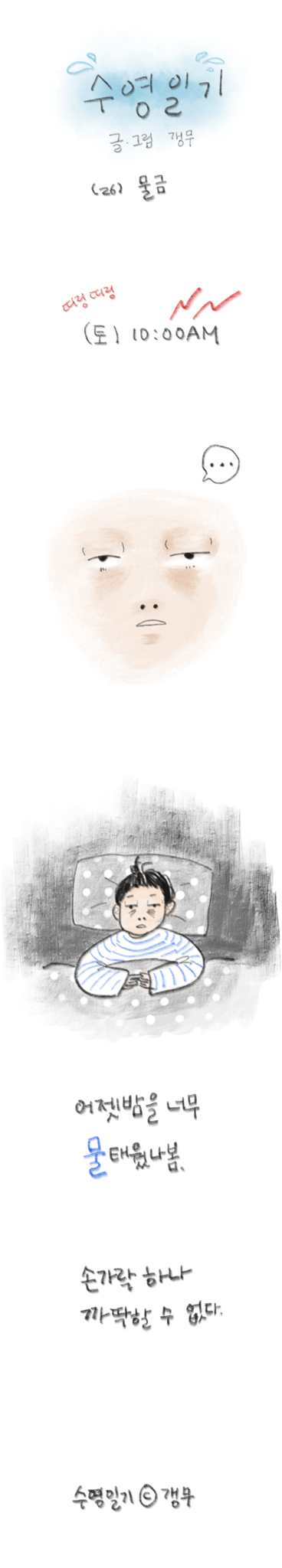어제는 이상하게 수업이 끝났어도계속 계속 수영이 하고싶어서 30분 더했는데오늘 아침 깨어나지 못할 뻔 했어요.근데 지금 자유수영 갈까 번뇌중.