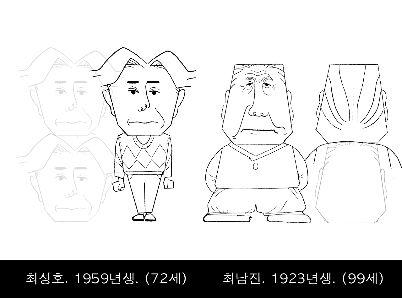 나는 특히 최남진, 최성호 부자 디자인이 기가 막히게 좋다고 생각하는데, 이 두 사람의 실루엣이 잘 대비되는 샷을 못 만든 것이 매우 아쉽다. 두 캐릭터 모두 사다리꼴이지만 서로 위아래를 뒤집은 모양이다. 둘 다 답 없는 가부장인 것은 같은데, 남성 임신에 대한 입장이 정 반대인 것이 잘 반영되어있다.