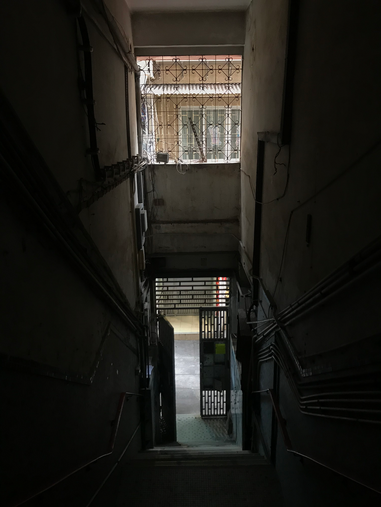 My accommodation was in a mansion near Tsim Sha Tsui station, on the top floor, but I had to climb one more floor via the emergency staircase. A boy at the reception offered to carry my suitcase. He looked much skinnier than me. Tall and thin like a licorice stick, with a dark face and a long beard under his chin, he had wrapped a large hood around his head like a cobra. He said he was twenty-five. Struggling with a twenty-five-kilogram suitcase that he seemed barely able to lift, he eventually suggested we carry it together. I smiled brightly, worried he might feel embarrassed because of me, and lifted it with him. I could feel the weight lingering in my shoulders and hands. The air in Hong Kong felt cold and damp as I quickly turned the door handle and stepped inside.
