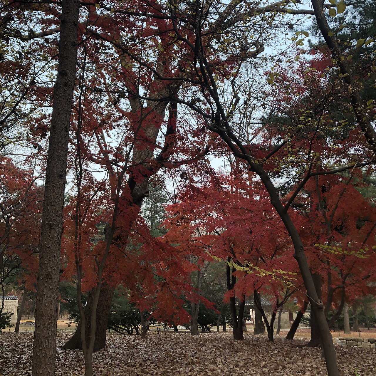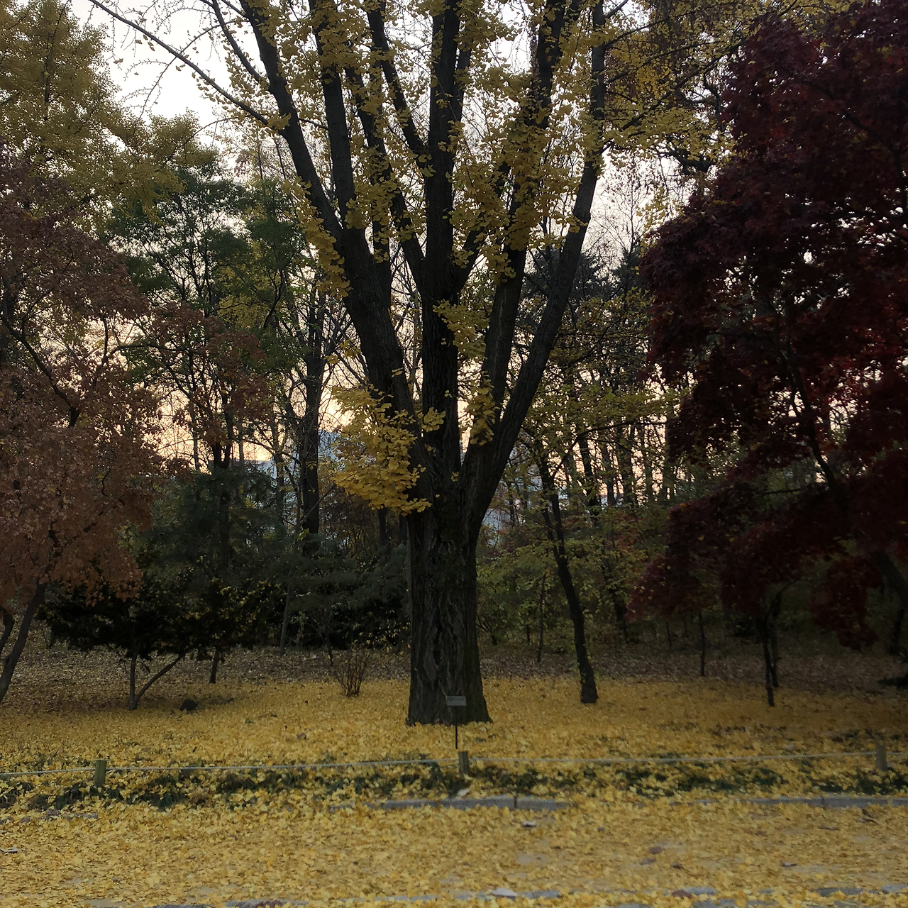 아직 가을이 다 간건 아닌지 노란 빨간 단풍들이 굳건히 나무에 붙어있다. 미세먼지가 아주 심한날이라 그런지 세상이 뿌옇게 보이는데 색동잎들만은 자신의 색을 강렬히 드러낸다.