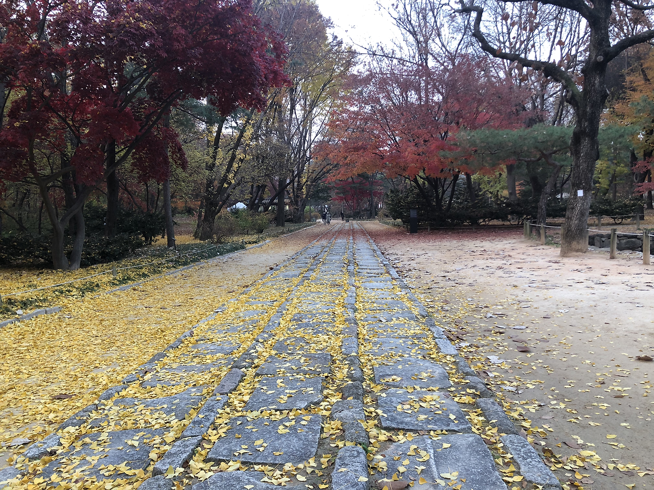 종묘에도 역시 오른쪽 길이 어로로 왕이 걷는 길이다. 가운데는 죽은 왕들의 혼령이 지나는 길, 그리고 왼쪽 길은 세자가 지나가는 길이라고 한다. 가운데 길로는 통행하지 말라는 팻말도 있다.
