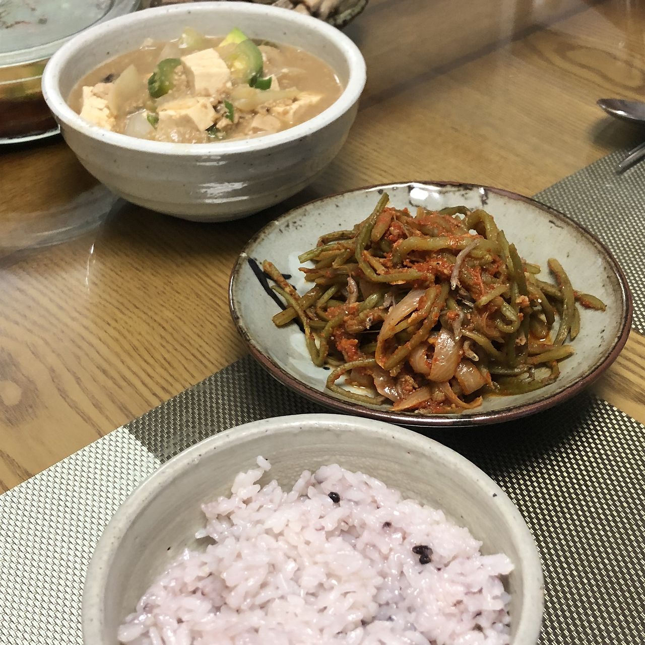 엄마는 갈치조림도 함께 한다. 된장찌개만 먹일 수 없다는 엄마의 마음이다. 메인이 된장찌개였는데 갈치조림이 되었다. 칼칼한 국물과 짭쪼름한 갈치 그리고 양파까지 한 숟갈 퍼먹고 나면 중독된다. 된장찌개야 미안.. 내일 많이 먹어줄게..
