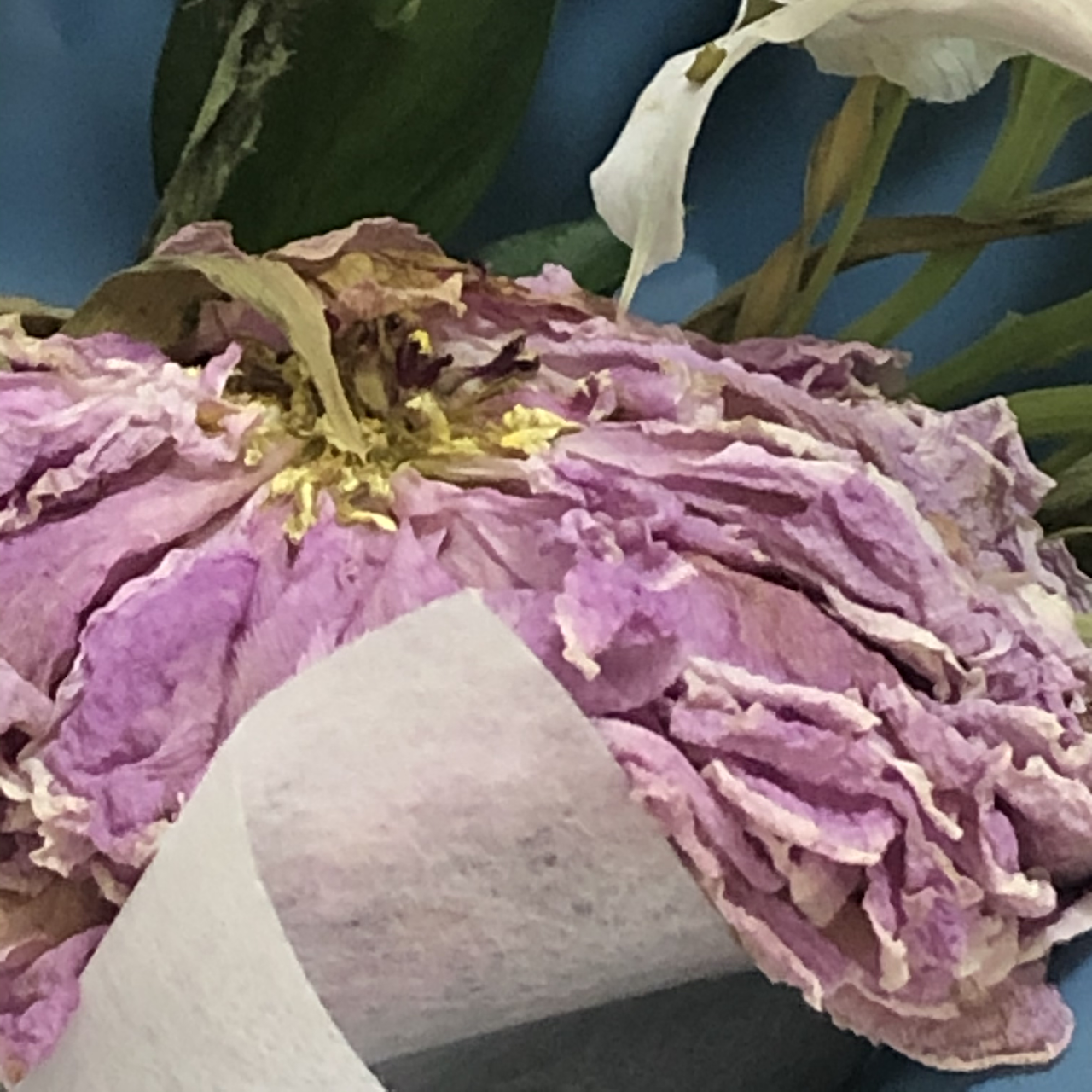 행복한 하루에 받은 꽃다발이 시들었다.