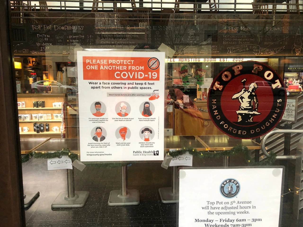 생각보다 시애틀(다운타운)의 모습은 조용하고 차분한 느낌이었다. 물론 요일이나 시간대에 따라 다르겠지만 생각보다 거리를 돌아다니는 사람이 적었고 모두라고 할 수는 없지만 거의 대부분의 사람들이 마스크를 착용하고 있었다. KF94와 같은 마스크를 쓴 사람보다는 거의가 의료용 마스크, 면 마스크, 천으로 입을 가리는 형태 등의 마스크를 쓰고 있었다.