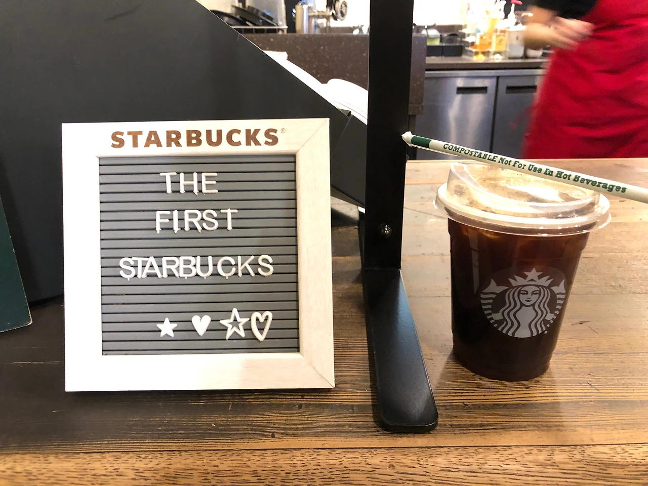 주문할 기념품을 주문하고 아이스 아메리카노 한잔을 주문했다. 주문대에는 The First Starbucks라는 조그마한 액자가 세워져 있었다. 맛? 아메리카노는 다 같은 아메리카노가 아닌가? ㅎㅎㅎ. 매장 밖을 나와보니 어느새 많은 사람들이 줄을 서고 있었고 아침 일찍 잘 왔다는 생각을 하며 집으로 돌아왔다.