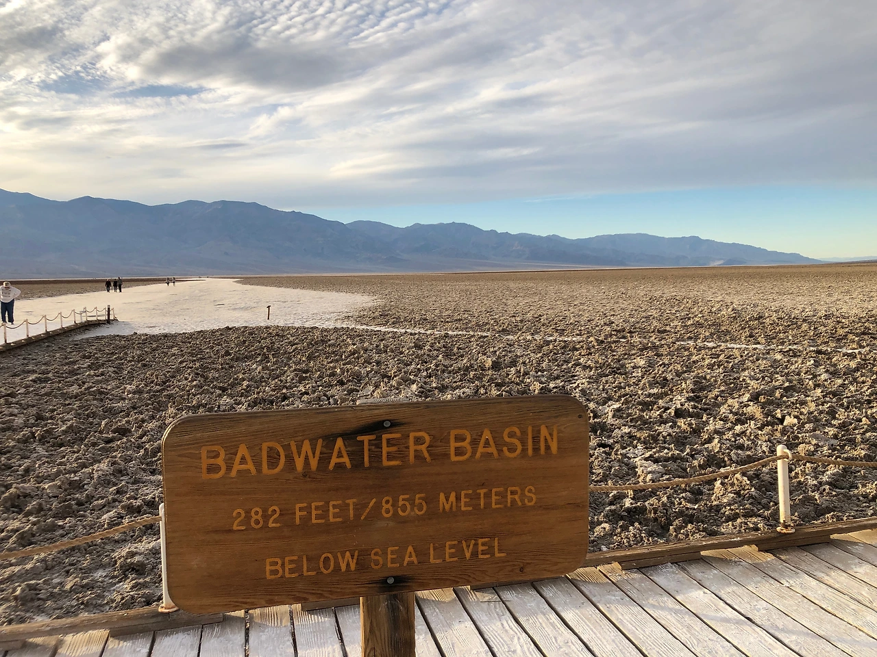 배드워터 베이선(BadWater Basin)은 이러한 일화가 있다. 1849년 미국 캘리포니아 금광으로 향한 170여 대의 포장마차들이 있었다. 미국 동부에서 서부까지의 머나먼 여정, 사막을 가로지르는 길을 선택한 사람들이 7주간 사막을 달리다 만난 사막의 물을 만난다. 그러나 죽음을 부르는 물, 미 서부에 위치한 사막 데스벨리에 있는 배드 워터이다. 해수면보다 85미터 낮은 곳의 이 곳은 주변의 물들이 낮은 배드워터로 모여 사막 안의 호수를 생성한다. 강수량이 적고 증발량이 많으면 물속의 칼슘과 나트륨이 증가하여 바닷물보다 훨씬 짠 호수가 탄생된 것이다. 캘리포니아 금광을 앞둔 마지막 고비 7주간 사막을 달리다 만난 물, 하지만 타는 듯한 목마름을 더해 서부 개척자들이 붙인 이름 배드워터. 그들이 죽음의 고비를 넘긴 후 간신히 빠져나와 한 말 'Good bye! Death Valley!' (출처:EBS 동영상('12.5.4) [중3과학] 죽음을 부르는 물, 배드 워터)