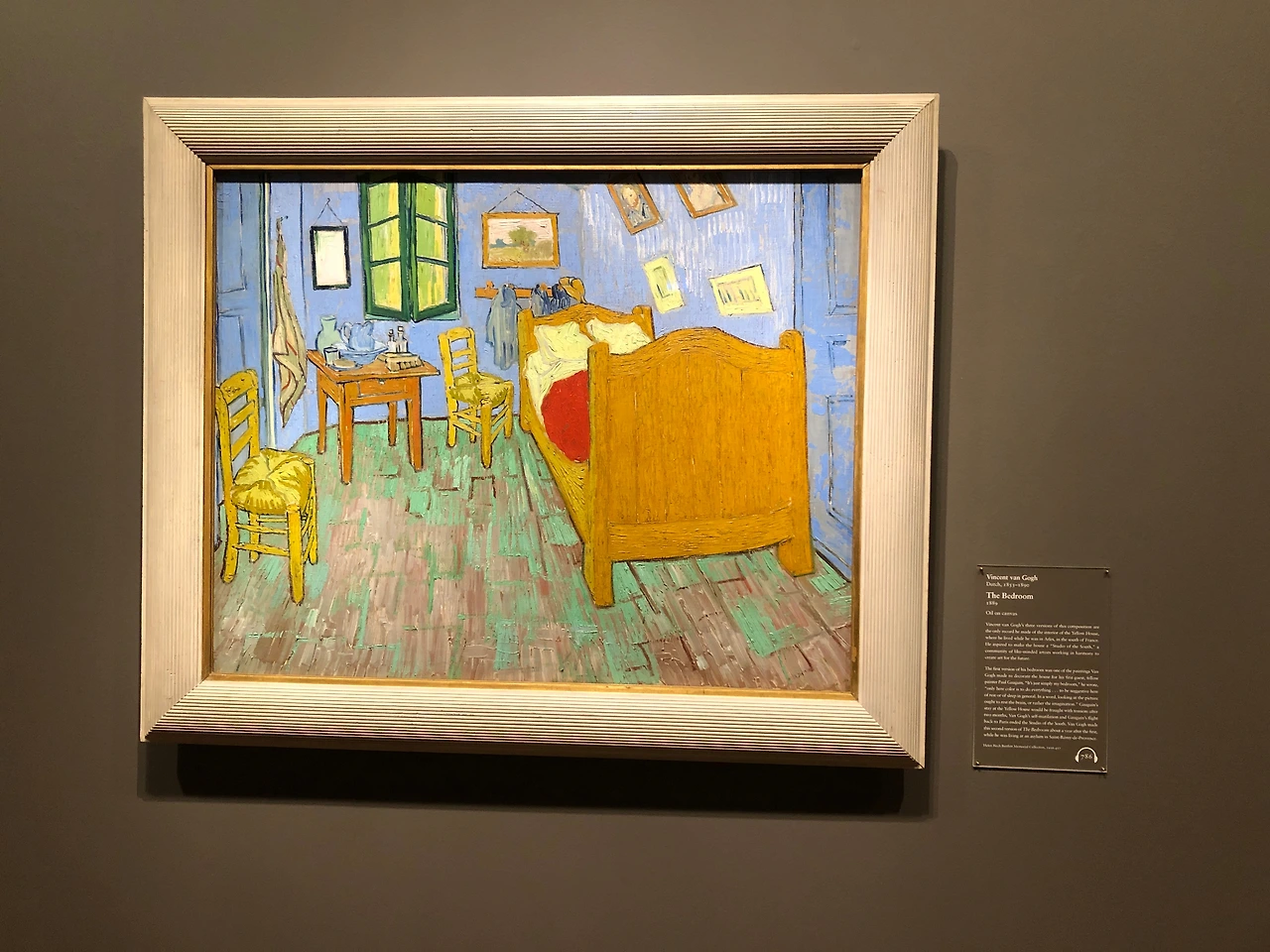 반 고흐의 ‘방(Bedroom)’ 3 작품 중 시카고 미술관에 전시되어 있는 작품은 1889년 하반기에 그린 방 중 두 번째 작품이다. 파리에서의 실패로 낙담한 빈센트 반 고흐는 1888년 2월에 프랑스 남부 프로방스로 떠난다. 그는 여기에서 화가 공동체를 설립하고자 ‘노란 집’을 빌렸고, 고갱을 초대했다. 고갱을 기다리면서 그는 고갱의 방을 장식할 <해바라기> 그림들을 그렸다. <고흐의 방>은 이 노란 방에 있는 단순한 가구와 그가 그린 그림 몇 점으로 꾸민 소박한 방을 그린 것이다.