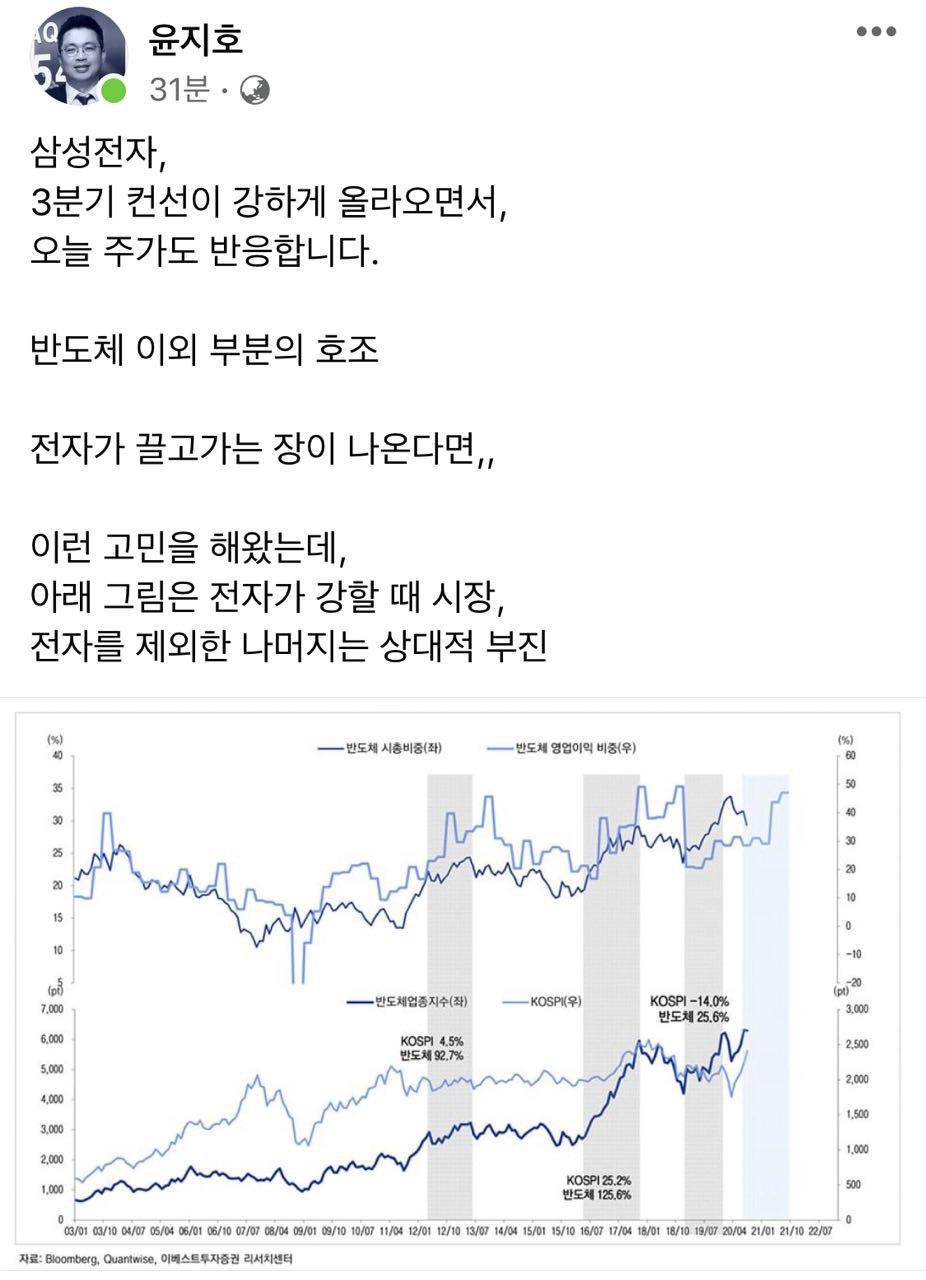 페친(페이스북 친구)이신 이베스트투자증권 윤지호 리서치센터장님께서 오늘 이런 글을 올려주셨습니다.