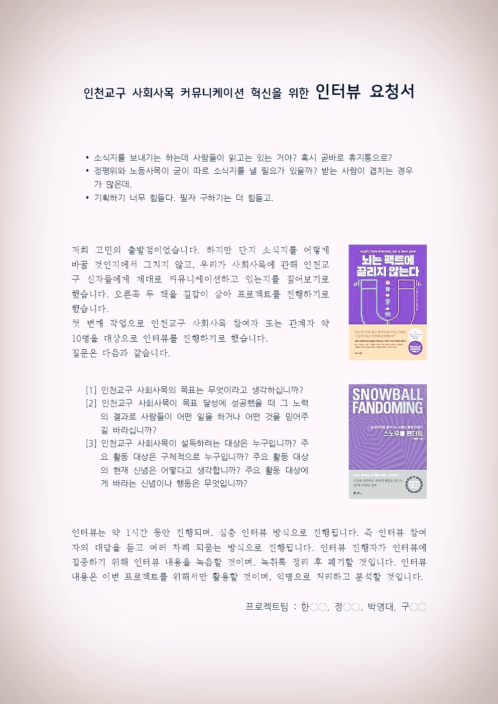 <뇌는 팩트에 끌리지 않는다>와 <스노우볼 팬더밍>, 두 책을 길잡이 삼아서 프로젝트를 진행하였다.